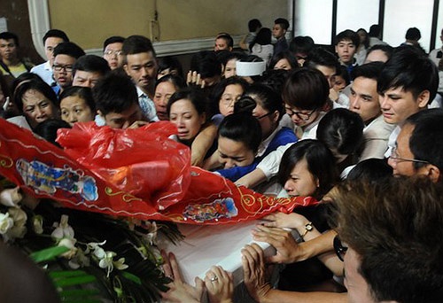 Mọi người òa khóc khi linh cữu của Wanbi được chuyển vào lò hỏa thiêu.