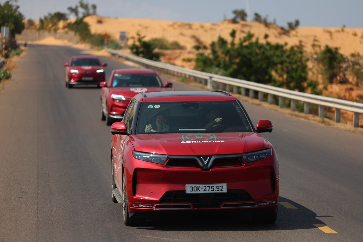 VF 9 Plus dẫn đoàn trên cung đường biển tại Phan Thiết.