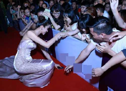 | Bức hình Hoa hậu Hoàn vũ Phạm Hương cúi nhặt điện thoại giúp người hâm mộ trong một sự kiện mới đây đã nhận được rất nhiều lời khen ngợi từ công chúng và gây "sốt" trên cộng đồng mạng |