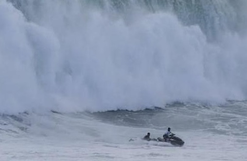 26/11/2019 17:41:00 +07:00Giây phút kịch tính khi tay đua mô tô nước giải cứu người lướt sóng được quay tại bãi biển Praia do Norte (Bồ Đào Nha), nơi có con sóng lớn bao trùm tất cả.
