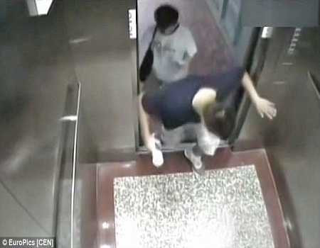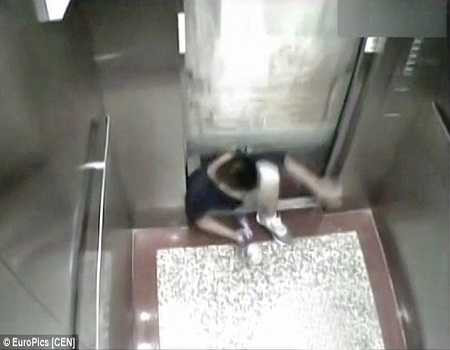 | Khoảnh khắc nạn nhân chưa kịp bước vào trong thì chiếc thang máy bắt đầu di chuyển lên trên |