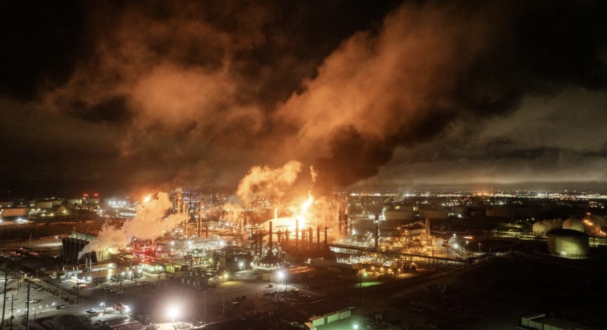 Khoảnh khắc nhà máy lọc dầu Chevron bùng cháy. (Video: Reuters)