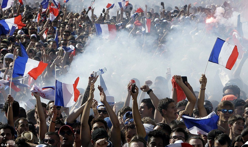 Hàng trâm nghìn cổ động viên phủ kín Đại lộ Champs-Élysées ăn mừng chiến thắng của đội nhà sau 20 năm chờ đợi.