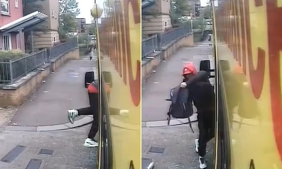 Trong video được camera giám sát trên xe ghi lại, người đàn ông mặc quần áo tối màu, đội mũ đỏ, đi giày trắng lại gần xe cứu thương. Anh ta dường như muốn đảm bảo an toàn trước khi ném một thứ gì đó vào cửa kính. Sau đó, người này chui đầu qua khe hở và lấy hai chiếc ba lô của nhân viên y tế, bỏ trốn khỏi hiện trường.
