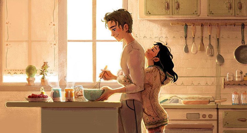 Hạnh phúc là khi mỗi sáng thức dậy, thấy anh đang làm bữa sáng ngon tuyệt cho hai chúng ta.