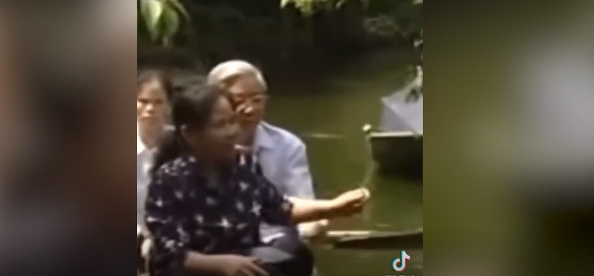 Khoảnh khắc Tổng Bí thư Nguyễn Phú Trọng trao cho phu nhân một nhánh cỏ khi ngồi trên thuyền cho thấy một tình yêu mộc mạc, giản dị, thuỷ chung.