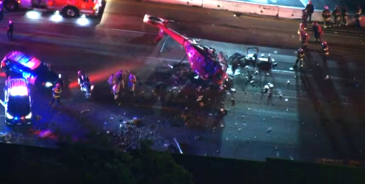 Khoảnh khắc trực thăng y tế Mỹ lao xuống cao tốc. Nguồn: Twitter