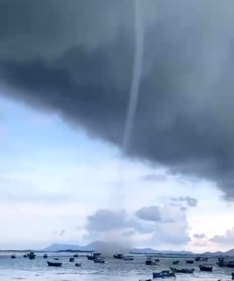 Vòi rồng cao hàng trăm mét tại Khánh Hòa (Ảnh cắt từ video)