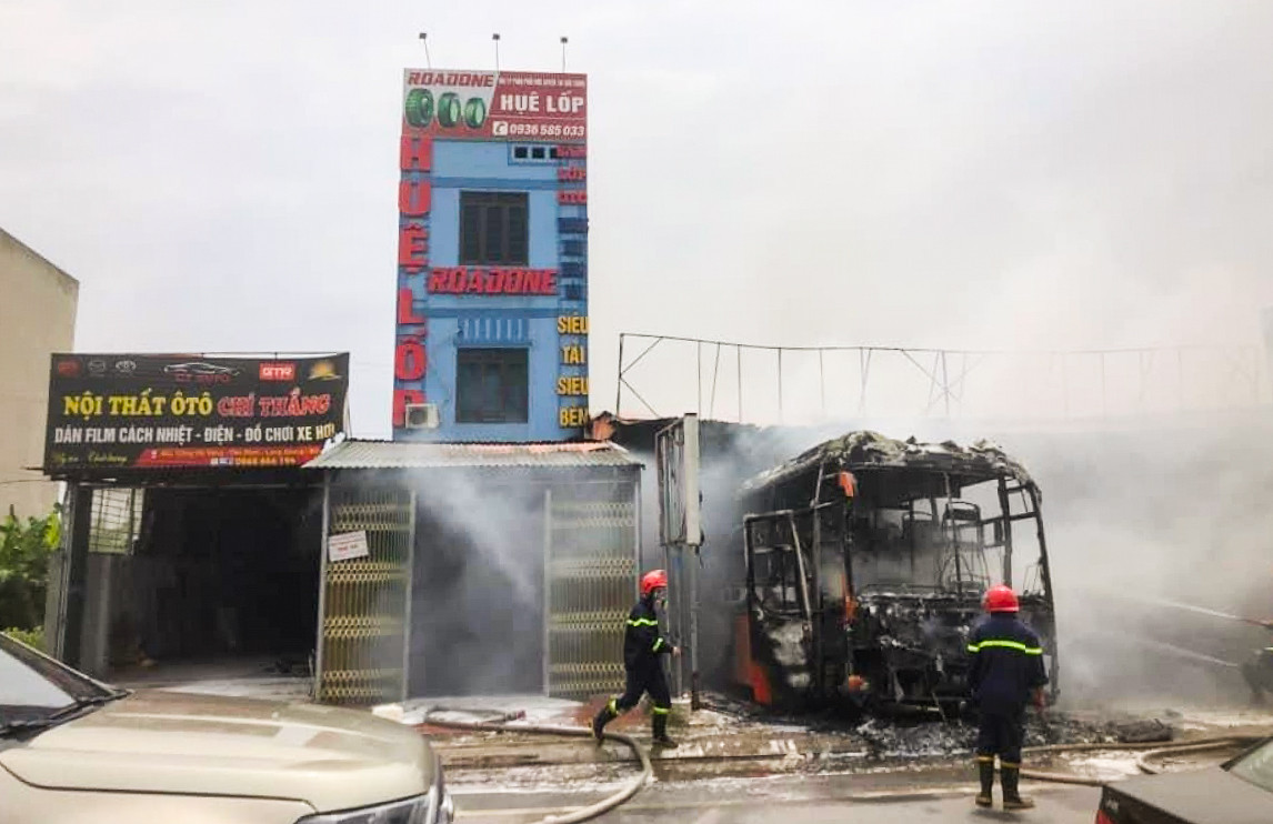 Ngay sau đó, 16 cán bộ, chiến sĩ và 2 xe chữa cháy kịp thời có mặt triển khai phương án chữa cháy. Lúc này, ngọn lửa bùng cháy tới khu vực xe ô tô giường nằm 45 chỗ và xe 4 chỗ kèm theo tiếng nổ lớn của các loại chất liệu khác, có nguy cơ cháy lan sang gara bên cạnh. Đến khoảng 11h35, đám cháy được khống chế hoàn toàn, không có thiệt hại về người.