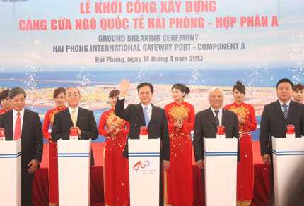 | Thủ tướng Chính Phủ Nguyễn Tấn Dũng cùng các vị lãnh đạo phát lệnh khởi công |