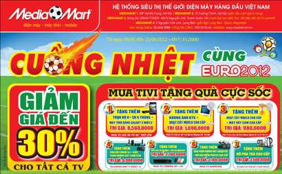 Ngoài mức giảm giá từ 15% - 35% cho tất cả các TV, hầu hết các model TV cao cấp bày bán tại Media Mart đều được tặng quà giá trị cao đi kèm. Chương trình bán hàng “Tivi LED -3D siêu size siêu rẻ” nằm trong chiến dịch “Cuồng nhiệt cùng Euro 2012” của Media Mart được khởi động từ đầu tháng 6 là một minh chứng.