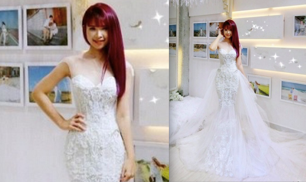 Theo tiết lộ của studio váy cưới, trang phục cưới dành riêng cho Khởi My còn có một phần đuôi rời gắn vào phía sau, cô dâu có thể mặc được 2 kiểu.