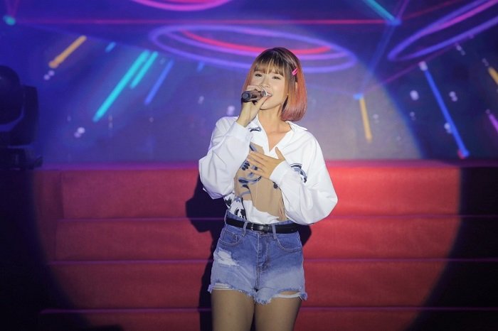 Cô ca sỹ có dáng người nhỏ nhắn này đã lan tỏa nguồn năng lượng tràn đầy cho các bạn sinh viên ĐH Sài Gòn