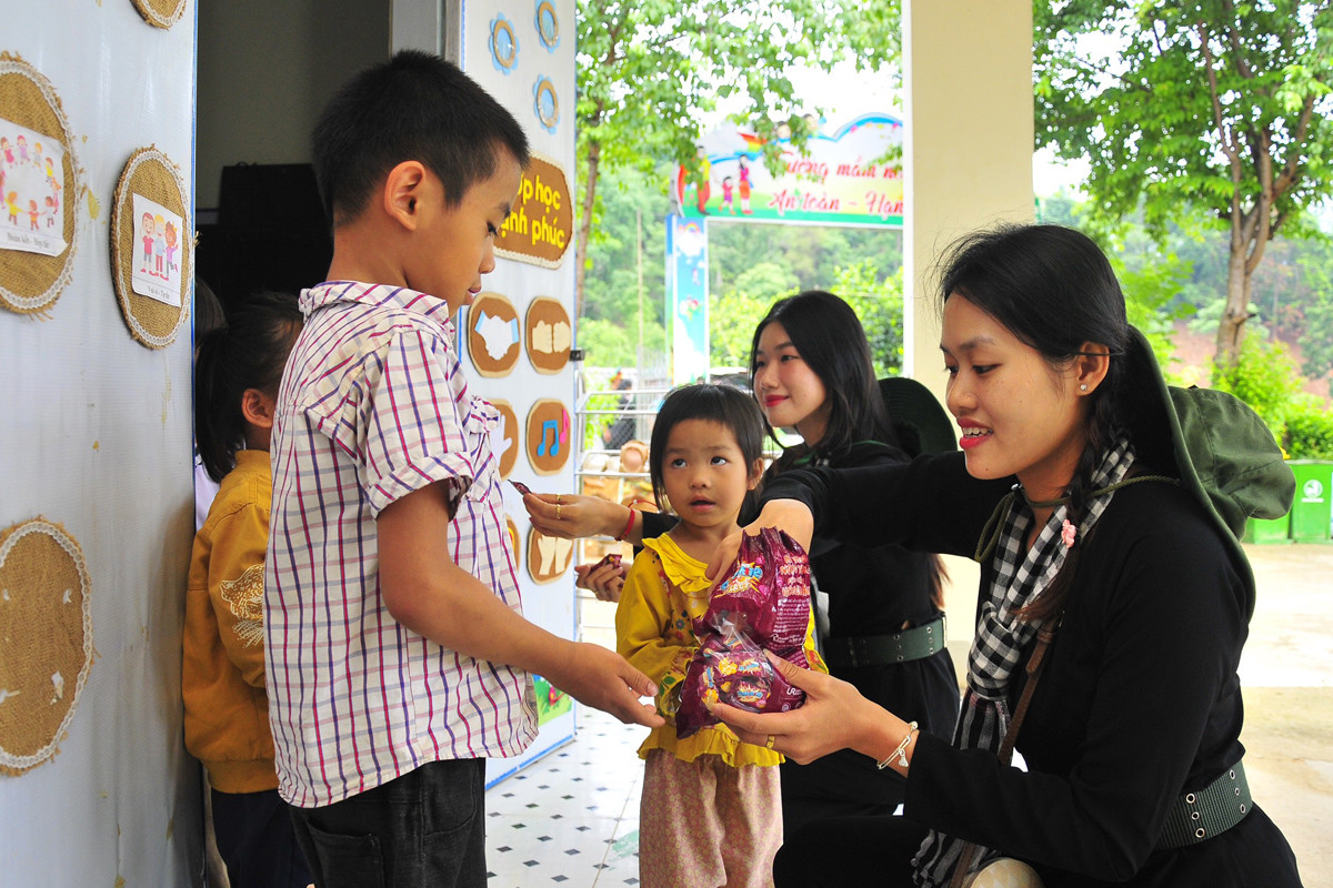 Nữ du kích miền Nam tặng quà các em nhỏ TP Điện Biên Phủ.