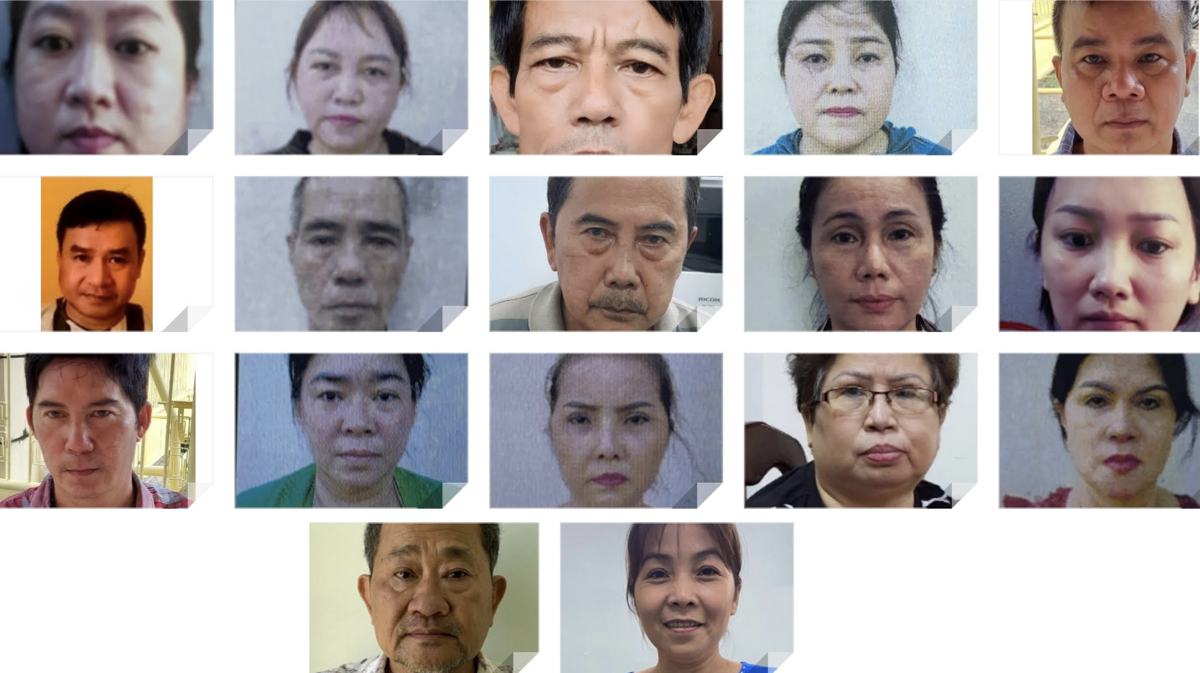 Trong 17 bị can bị khởi tố có 9 bị can bị bắt tạm giam gồm: Nguyễn Thị Thủy Liên (sinh năm 1966), Dương Văn Hoàng (sinh năm 1959), Huỳnh Sĩ Nguyên (sinh năm 1979), Lê Tấn Hảo (sinh năm 1966), Trần Thị Ánh Tuyết (sinh năm 1972); Lương Thị Kim Khá (sinh năm 1980); La Thị Hồng Yến (sinh năm 1973), Trương Thị Bích Hạnh (sinh năm 1981) và Nguyễn Thị Hồng Sơn (sinh năm 1981).