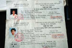 Các thẻ dự thi giả phần hình bị cơ quan điều tra thu giữ.