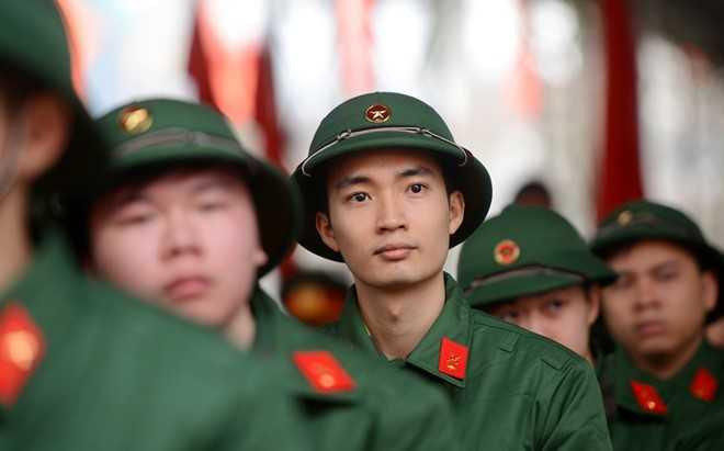 Các thanh niên ở Hà Nội lên đường nhập ngũ sáng 14/2
