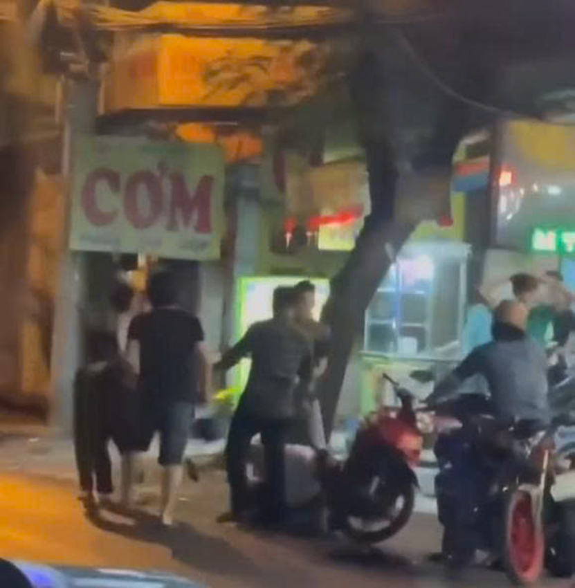 4 thanh niên lao vào hỗn chiến vì mâu thuẫn từ bàn nhậu. (Ảnh cắt từ clip)