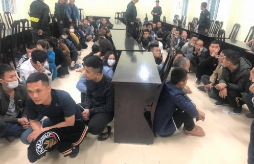 101 "con bạc" bị bắt giữ đưa về trụ sở công an để điều tra, phân loại