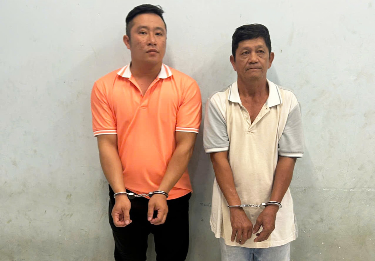 Trần Tiến Thịnh (trái) và Thái Hoàng Phương tại cơ quan điều tra. (Ảnh Công an cung cấp)
