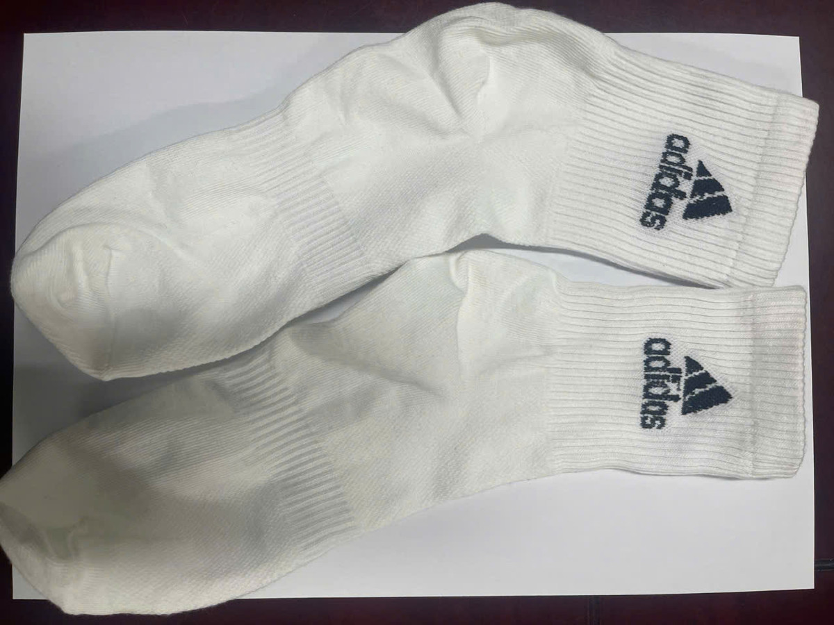 Đôi tất giả nhãn hiệu Adidas do Thiện sản xuất.