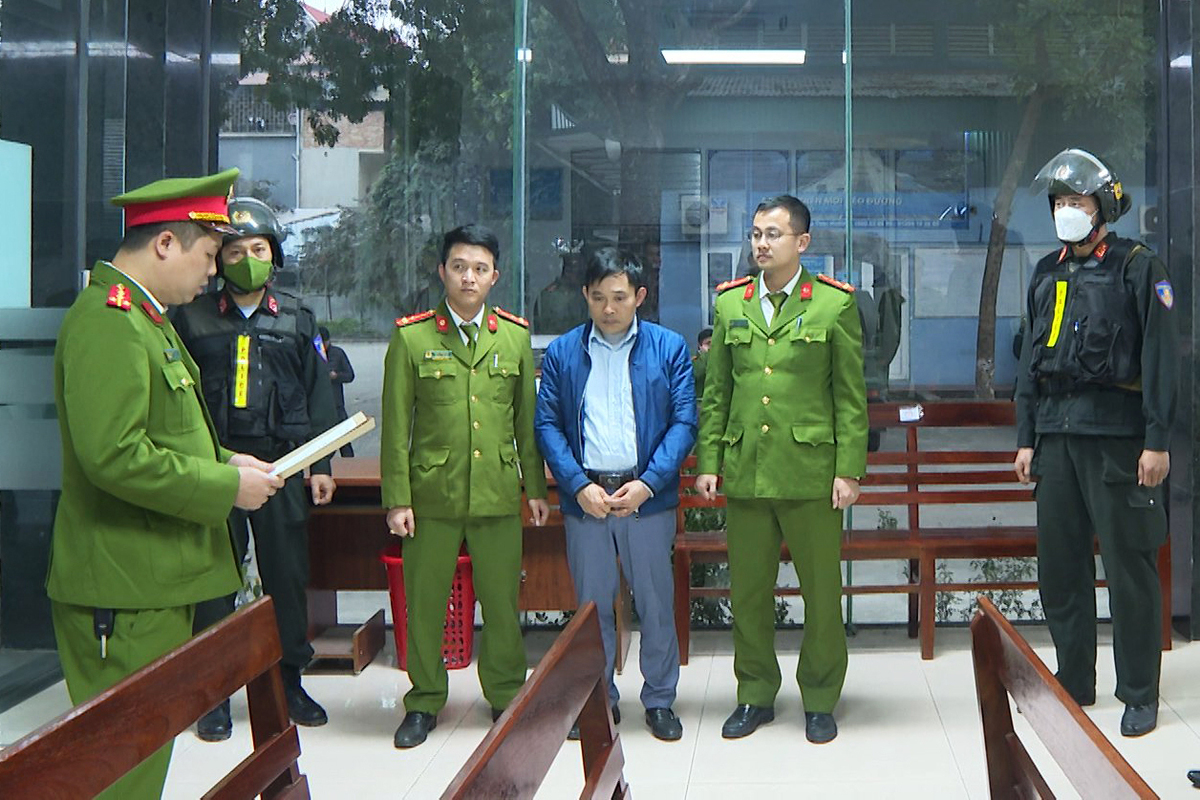 Cơ quan công an tống đạt quyết định khởi tố vụ án, khởi tố bị can, tạm giữ hình sự đối với Phùng Mạnh Duẩn. (Ảnh: CAPT).