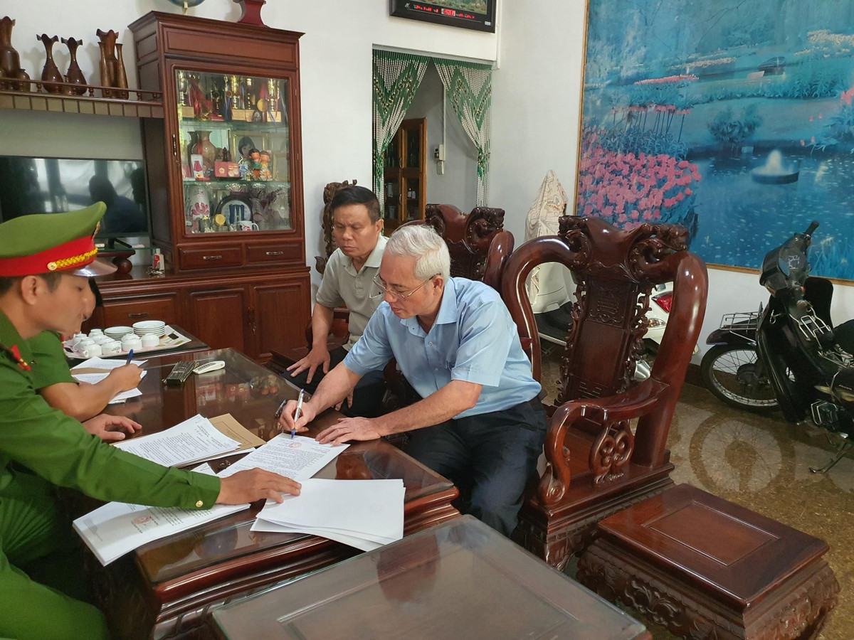 Cơ quan công an thực hiện quyết định khởi tố ông Hòa tại nhà riêng.