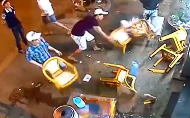 Thấy vậy, Lưỡng cầm ly sang mời một người ngồi cùng bàn với sĩ quan công an này và nhắc lại chuyện bị xử phạt. Sau khi lời qua tiếng lại, Lưỡng cầm ly hất bia vào mặt đại úy Nhiều. Ông Nhiều đứng dậy thì bị Lưỡng cầm ly bia đánh trúng vào mặt.
