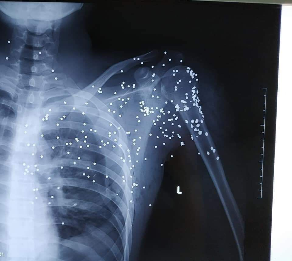 Những vết đạn chi chít trên cơ thể nạn nhân.