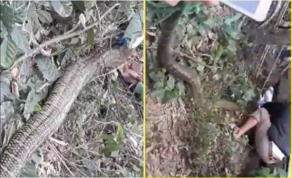 Anh Hà Minh Đức (34 tuổi), một người dân địa phương ở đây cho biết: "Chính tôi là người đã quay lại video clip và chia sẻ lên mạng thông tin vụ việc người dân cùng nhau vây bắt thành công con rắn nặng gần 20kg".
