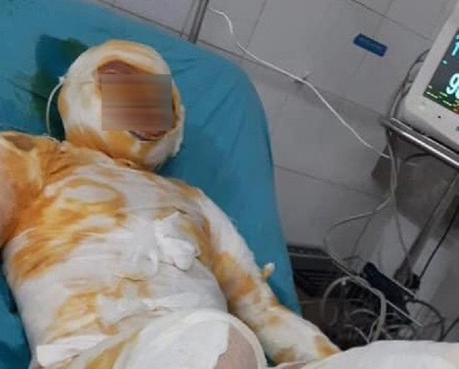 Chị H. đang được điều trị tại Bệnh viện Bỏng Quốc gia.