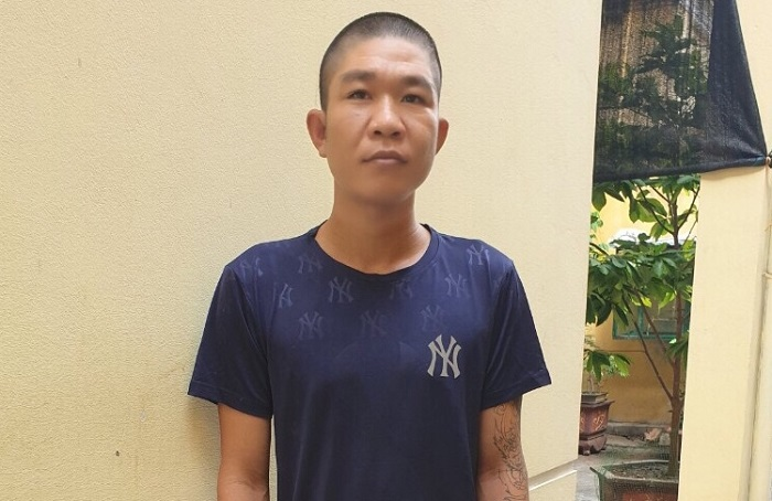 Lực lượng chức năng khống chế Vũ Văn Dũng và đưa nam thanh niên này về trụ sở làm việc.