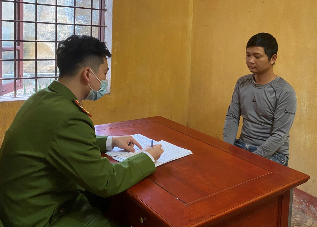 Nguyễn Tất Cường tại cơ quan điều tra. (Ảnh: Công an Bắc Giang)