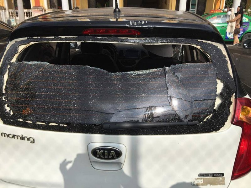 Cùng lúc, nhóm nghi phạm trên mang theo kéo, gậy, gạch… và cắt tóc của chị T., chọc thủng lốp xe, đập phá chiếc ô tô của chị này.