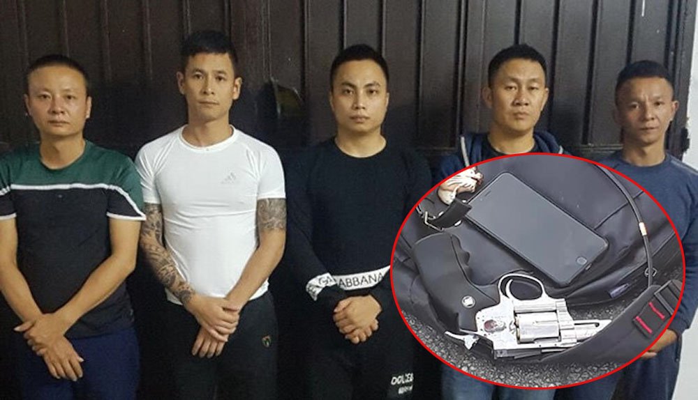 Tại hiện trường, lực lượng công an thu giữ một khẩu súng ngắn ổ xoay Colt Rulo, 5 viên đạn, một thanh kiếm, một gậy kim loại.