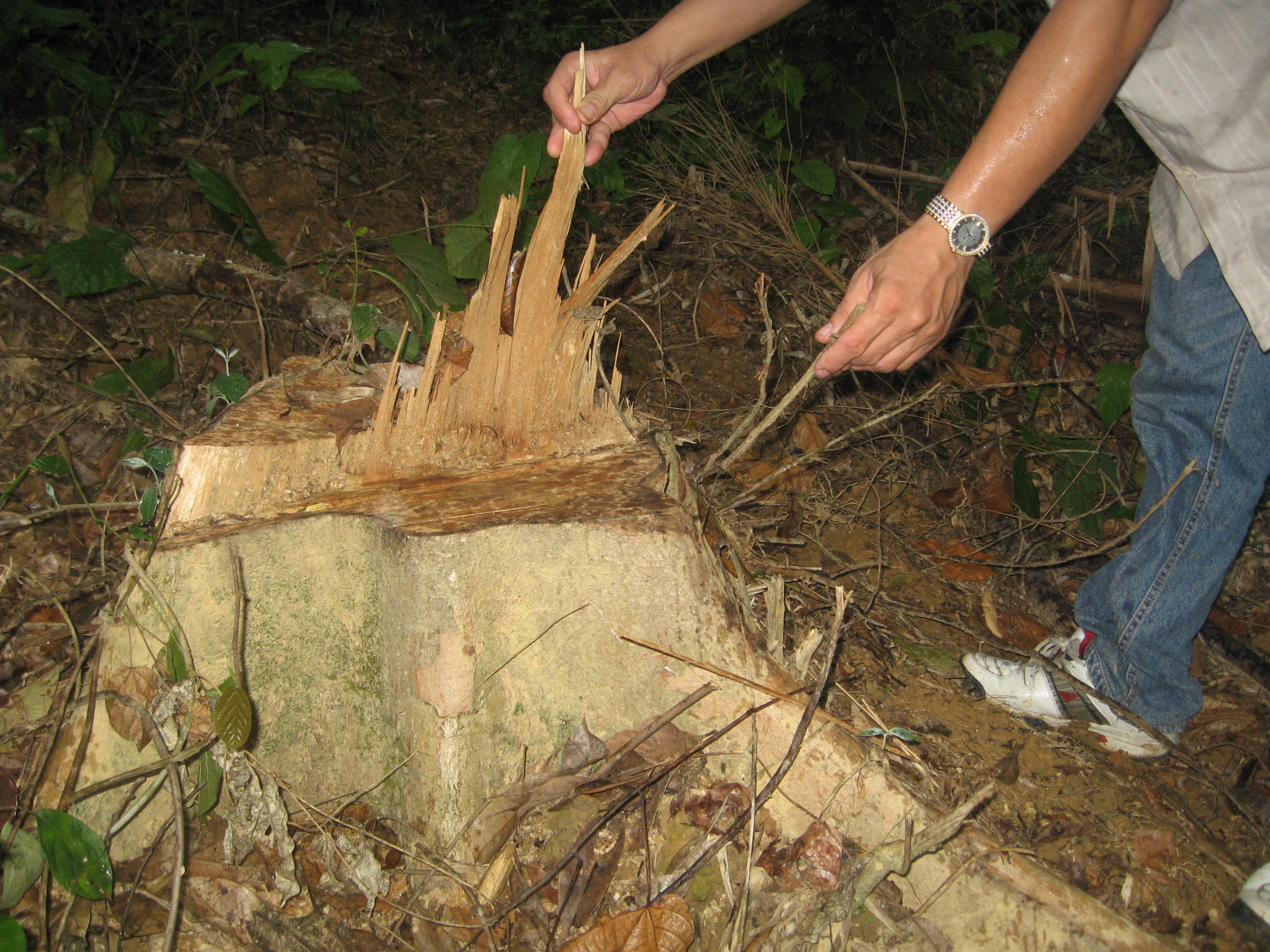 Tổ công tác lập tức tổ chức vây bắt nhưng các đối tượng đã bỏ trốn, vứt lại 2 máy cưa xăng. Tại hiện trường, 11 gốc cây bị chặt hạ.