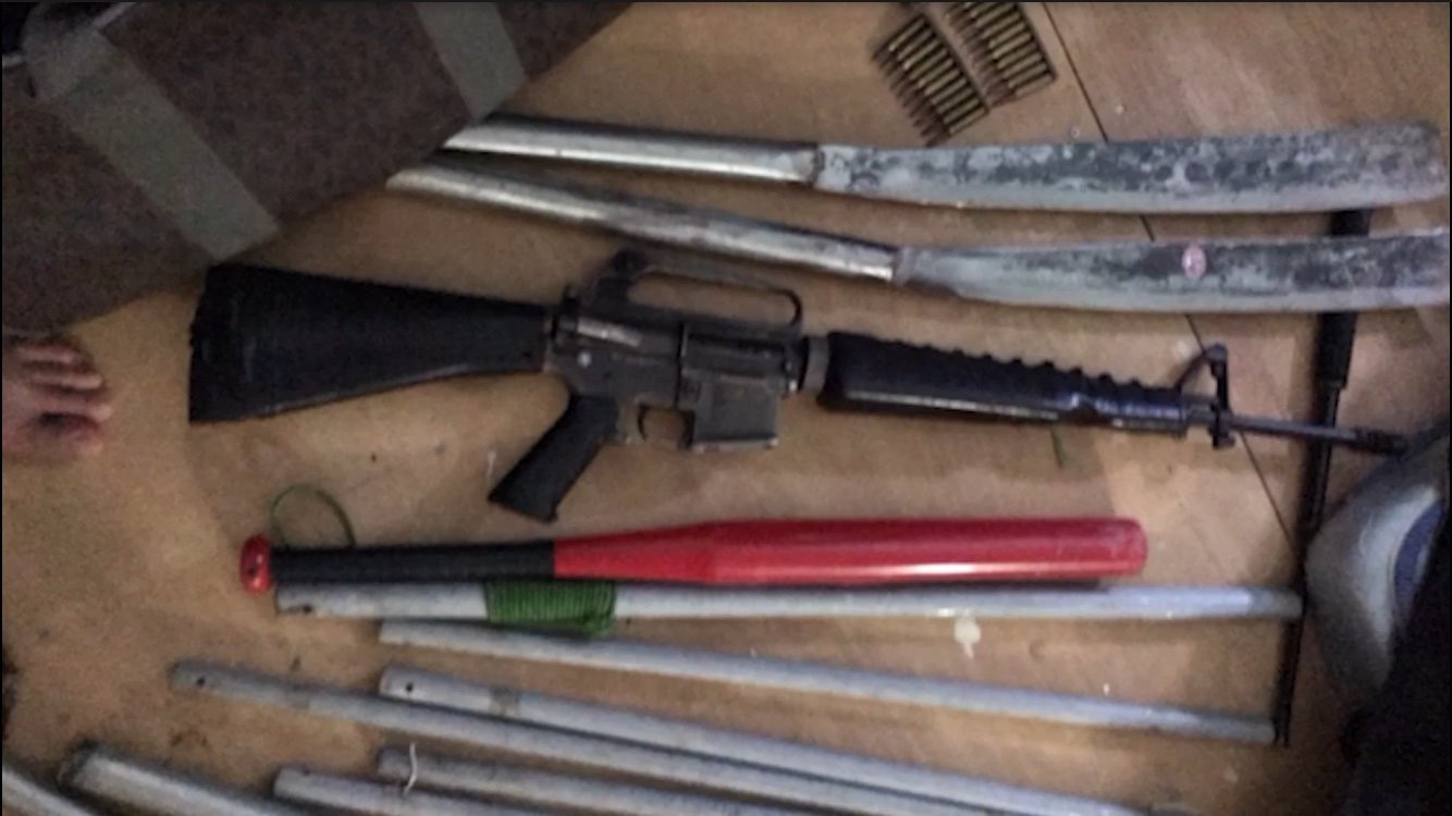 Lực lượng công an đã thu giữ 1 khẩu súng trường AR15, 38 viên đạn cùng một số hung khí khác.