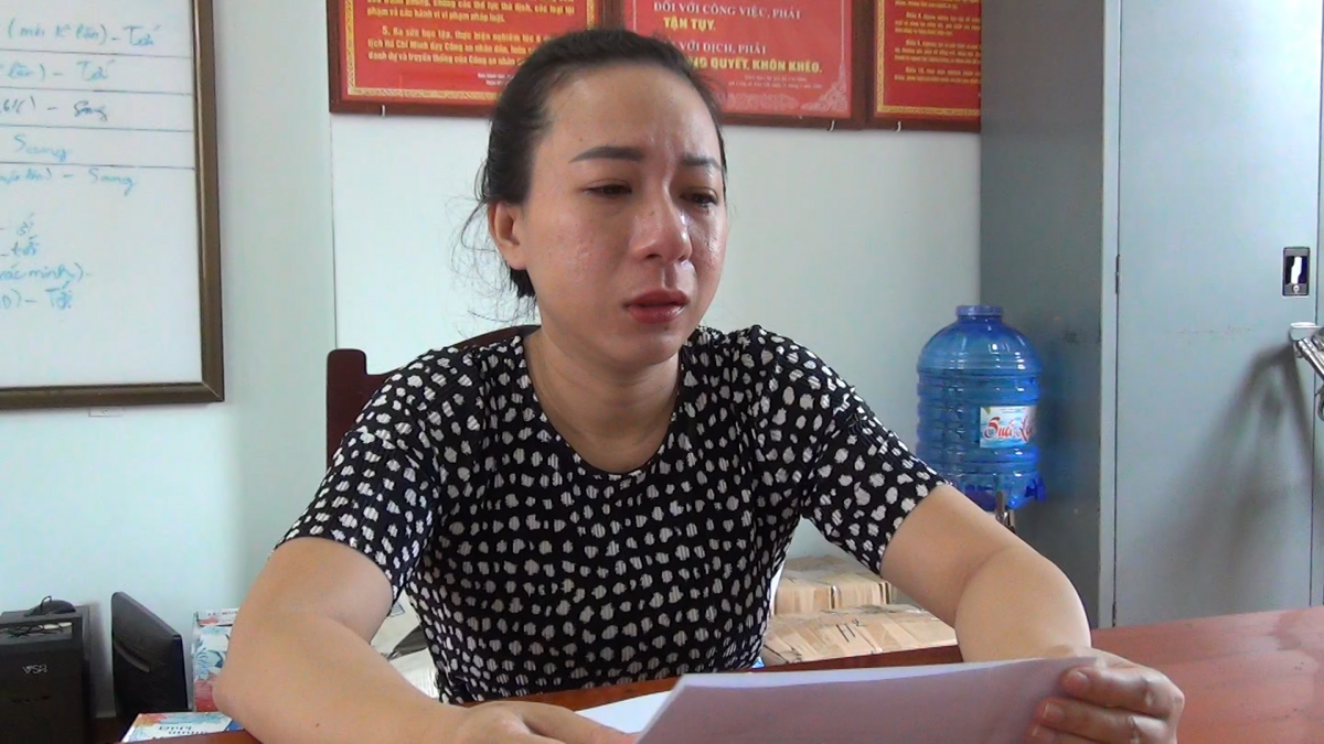 Trần Thị Oanh tại cơ quan công an. (Ảnh: Văn Vũ)