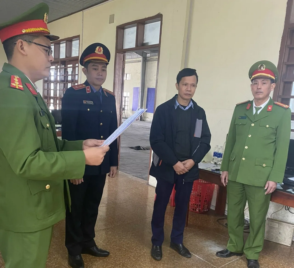 Công an tỉnh Quảng Bình thi hành quyết định khởi tố bị can đối với Đặng Thành Chung. (Ảnh: Công an Quảng Bình)