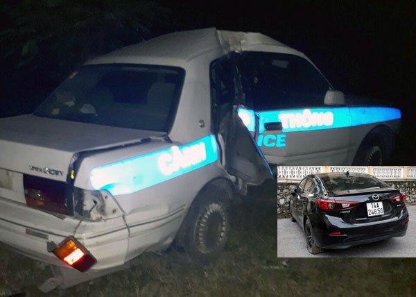 Chiếc xe chuyên dụng của CSGT gặp nạn trên đường truy đuổi tội phạm ma túy.