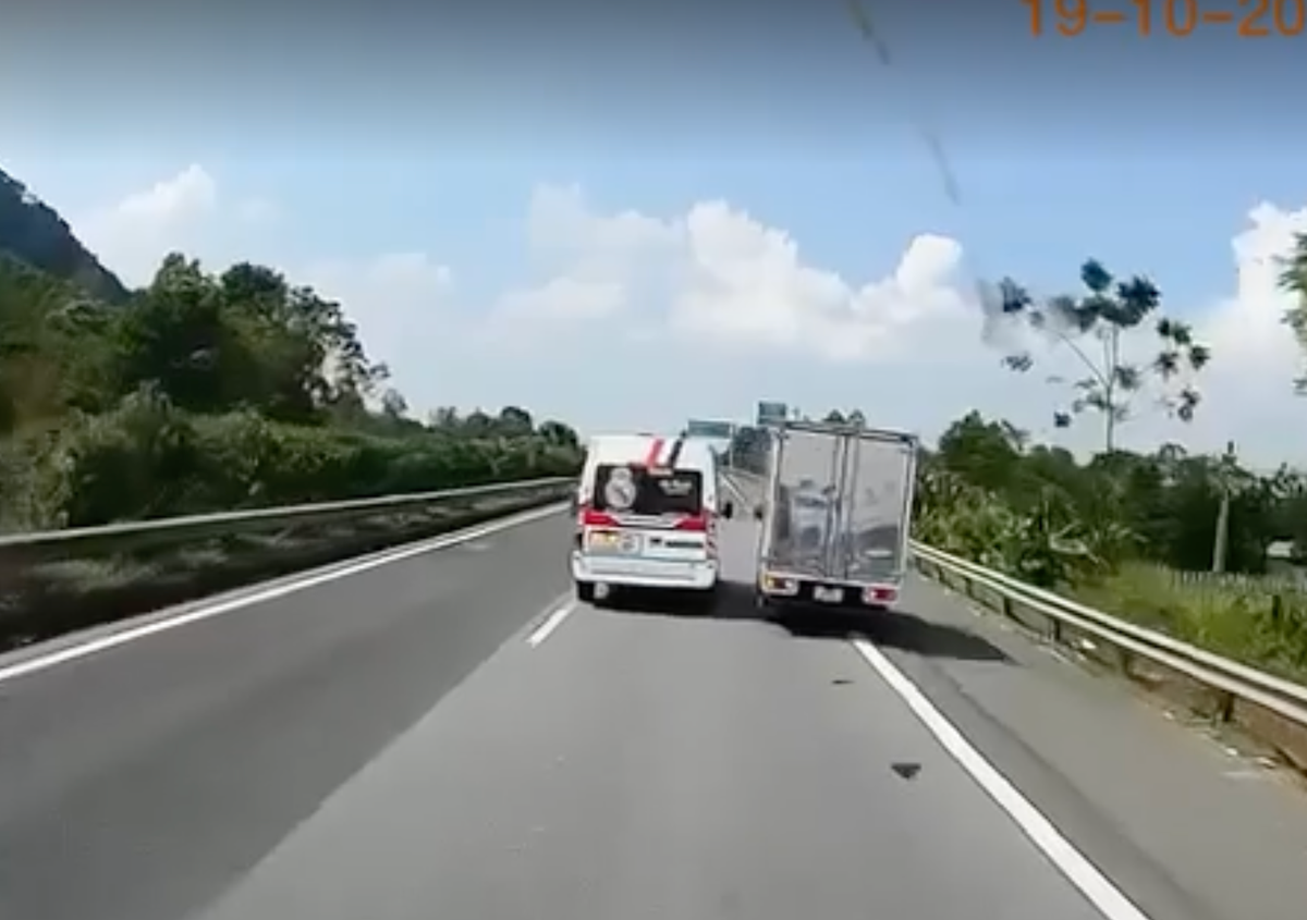Sau đó, Cường lái ô tô khách vượt lên tạt đầu xe tải nhằm không cho xe này đi trước. Nam tài xế còn tiếp tục điều khiển xe khách tạt đầu xe tải thêm một lần nữa.