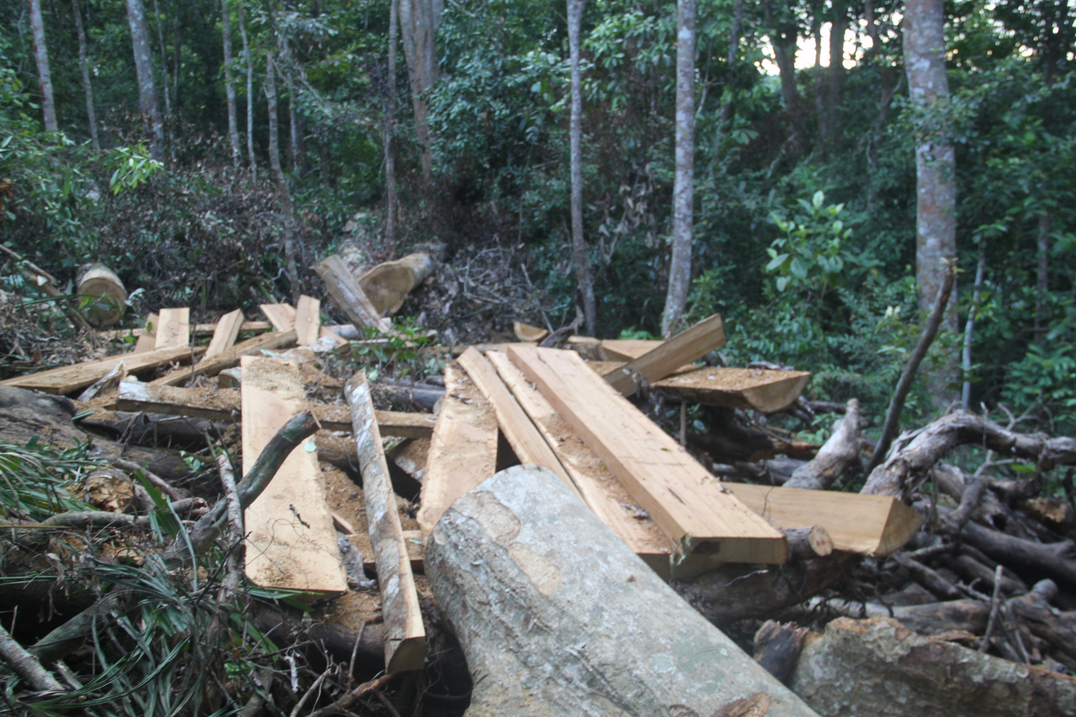 Tại đây, lực lượng chức năng phát hiện 134 phách gỗ xẻ với khối lượng khoảng 12m3; khoảng 25m3 gỗ tròn, đồng thời thu giữ toàn bộ vật dụng lán trại.