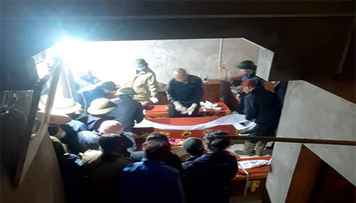 Thi thể ba bố con ông H. được người thân lo liệu an táng. (Ảnh: CTV)