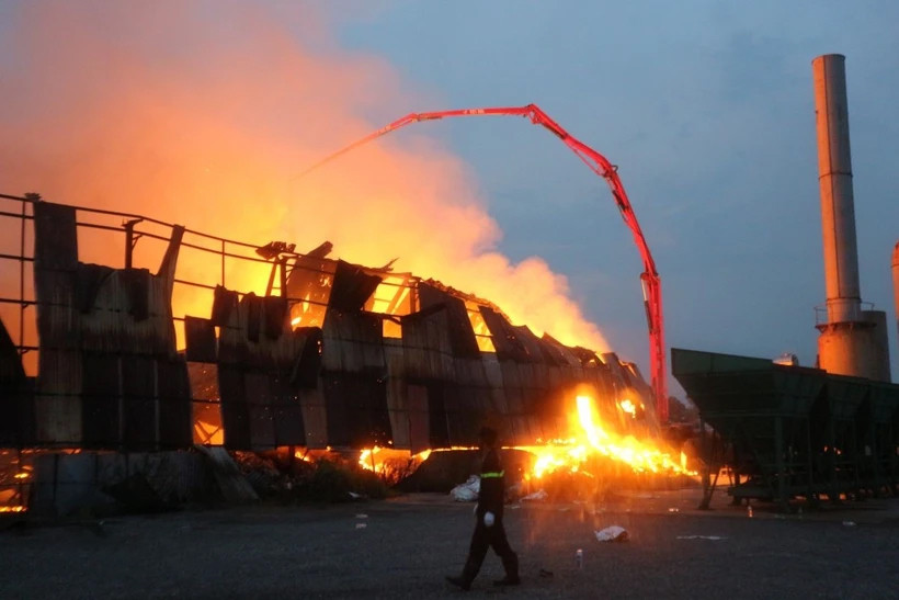 Trước đó, khoảng 13h45’ ngày 28/6 tại thôn Ao, xã Minh Hải (Văn Lâm, Hưng Yên), vụ cháy xảy ra tại xưởng phế liệu của anh Nguyễn Văn Hàng (SN 1976, tại Thanh Oai, Hà Nội) làm chủ.