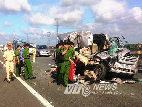 Hiện trường vụ tai nạn thảm khốc ở cao tốc TP.HCM - Trung Lương khiến cho 4 người tử vong.