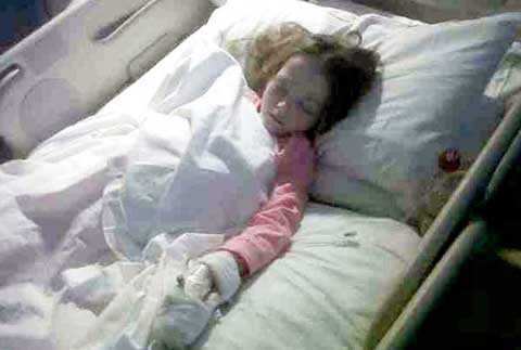 Khi thấy toàn cơ thể con gái trắng bạch ra vì những cơn đau bụng quằn quại không thể tự đi nổi nữa mẹ cô bé đã vô cùng lo lắng và ngay lập tức đã đưa cô tới Trung tâm y tế Queen của Nottingham, Anh Quốc.