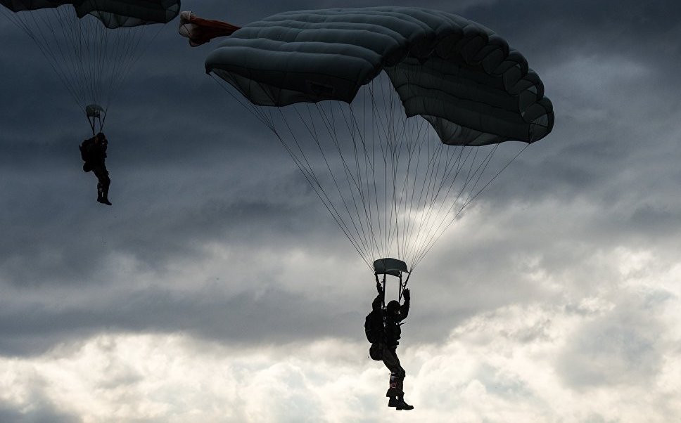 Lực lượng đổ bộ đường không Nga bao gồm các đơn vị không quân, lính dù, hậu cần và huấn luyện, trong ảnh là quân nhân VDV luyện tập nhảy dù trong tập trận “Tình anh em Slavơ” năm 2016 tại Serbia. (Ảnh: Sputnik)