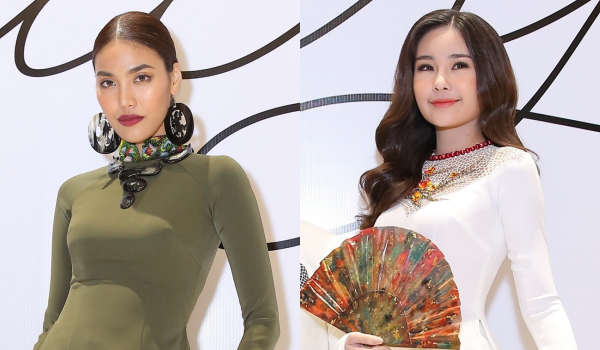 Hoàng Thuỳ cũng góp mặt tại sự kiện trong bộ áo dài xanh cùng trang sức ấn tượng.