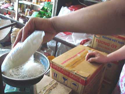 | Do cả người mua và người bán đều không phân biệt được các loại đường nên việc mua nhầm loại đường gây độc hại và bị cấm như Cyclamate về sử dụng là chuyện rất dễ xảy ra. (ảnh N.Liên) |