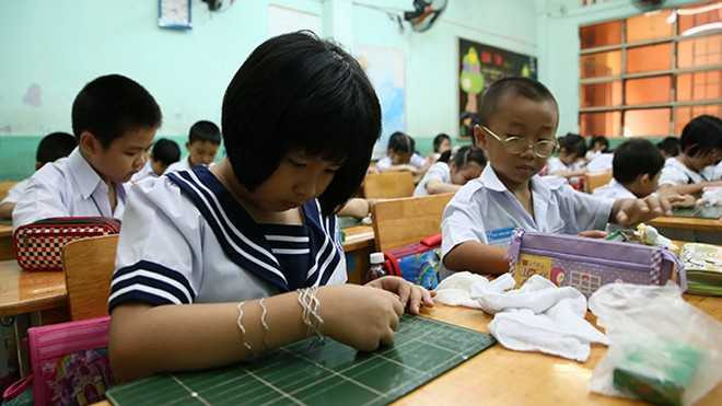| Một tiết học của học sinh lớp 1 Trường tiểu học Nguyễn Chí Thanh, Q.10, TP.HCM. |